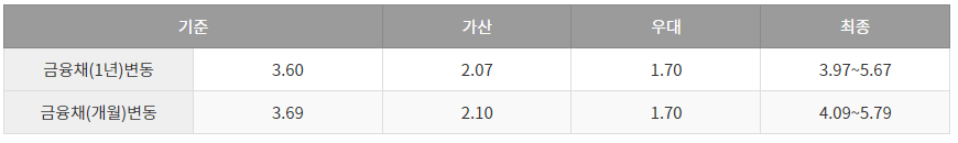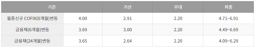 - 대출기간 중 대출원금의 5% 이상을 부분분할상환하기로 약정한 자