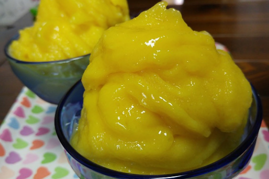 특히 여름철 아이들의 간식으로 많이 먹는데 냉동 망고를 아이스크림 처럼 먹기도 하고 살짝 녹여서 망고 샤배트로도 만들기도 하고 우유나 크림을 섞어서 망고스무디로 만들어서도 자주 먹습니다.