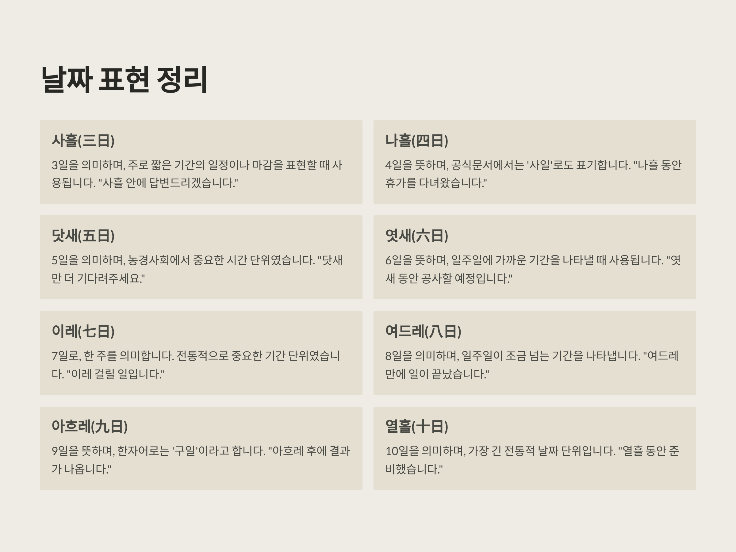 사흘, 나흘, 닷새부터 아흐레, 열흘까지 날짜 표현 정리