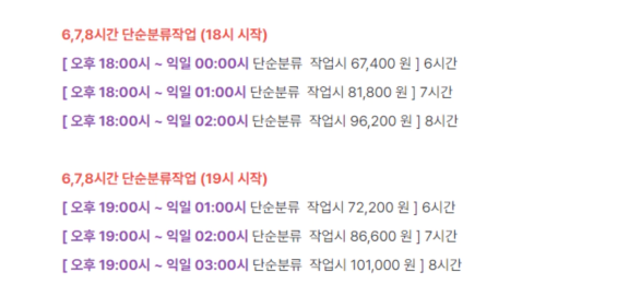 제가 지원한 파트는 단순 분류 파트입니다. 시간은 오후 19~ 익일 3시 근무로 지원을 하였습니다. 이때까지만 해도 단순 분류가 무슨 일지는 상상도 못 했었습니다.